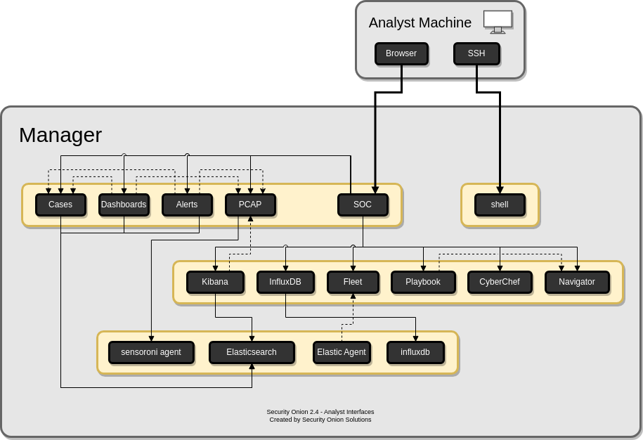Security Onion provides tools for the analyst through its Security Onion Console (SOC). This consists of a combination of custom and existing tools for analysts to analyze what Security Onion has captured and detected.